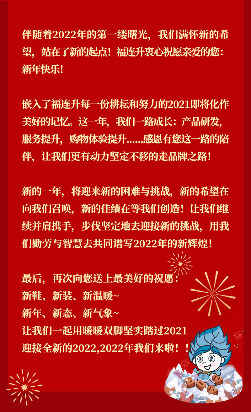 福連升祝全國人民新年快樂!2022不忘初心,堅定品牌之路!